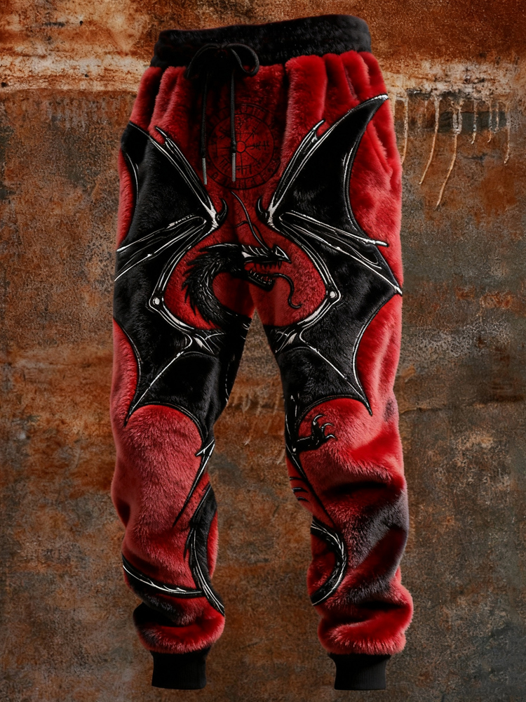 Men's Vintage Viking Dragon Style Celtic Art Cozy Fur Collar Knit Hooded Sweater Jacket