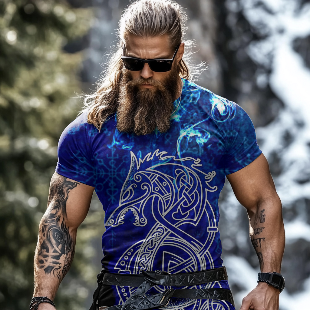 Men's Vintage Viking Wolf Rune Print T-shirt