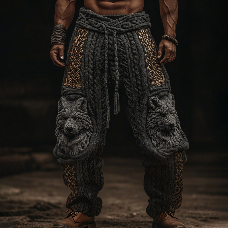 Men's Vintage Viking Wolf Celtic Knot Cozy Chunky Knit Sweatpants