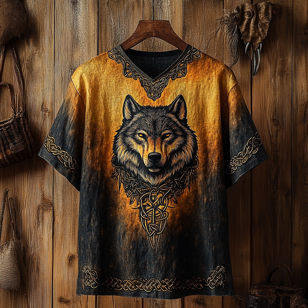 Men's Viking Celtic Wolf Art Gradient Linen T-shirt
