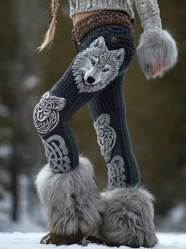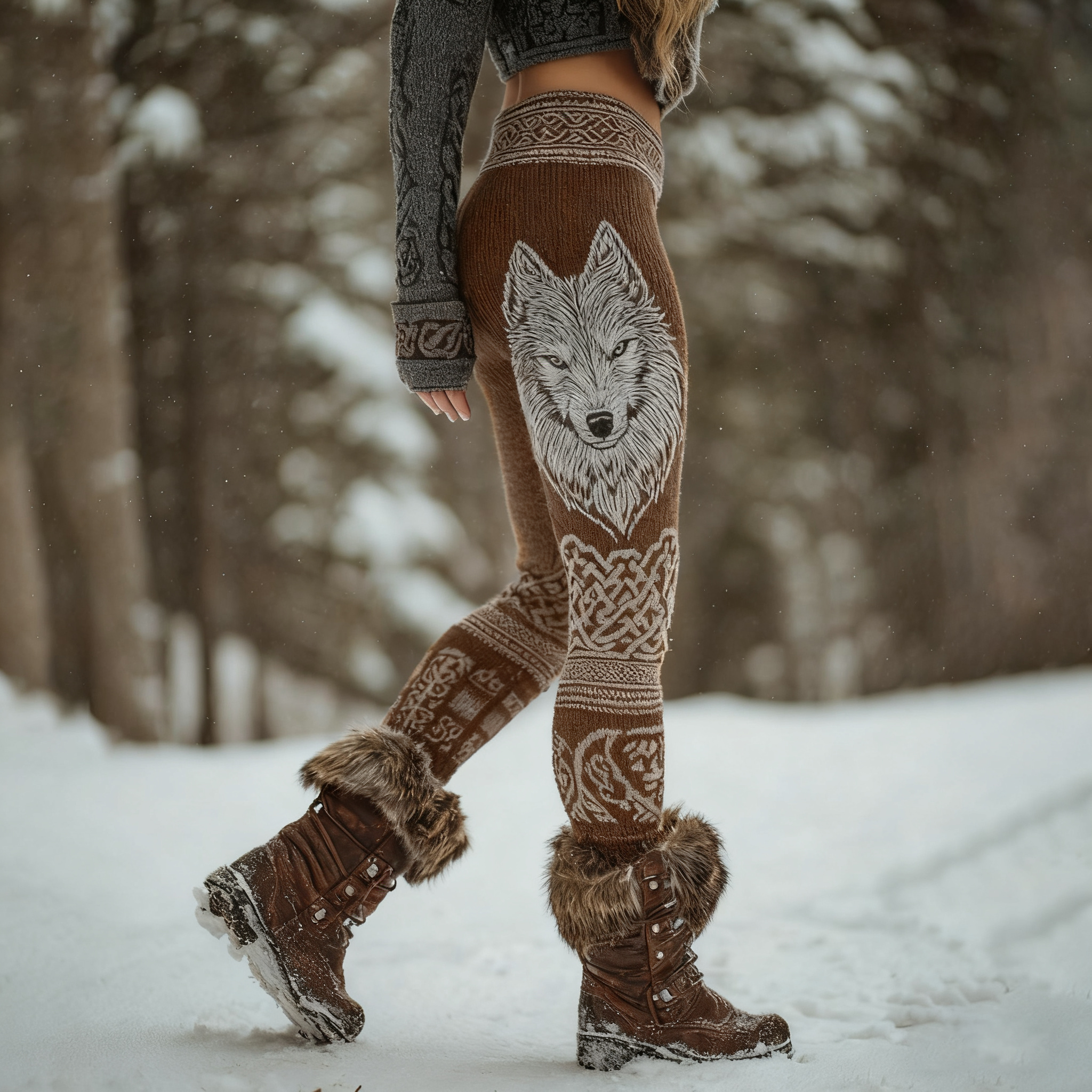 Fuzzy Wolf Viking Celt Knot Chunky Cozy Leggings