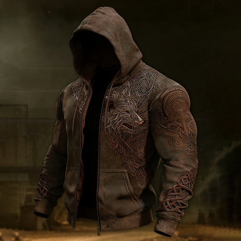 Men's Viking Mythology Wolf Celtic Totem Hooded Jacket