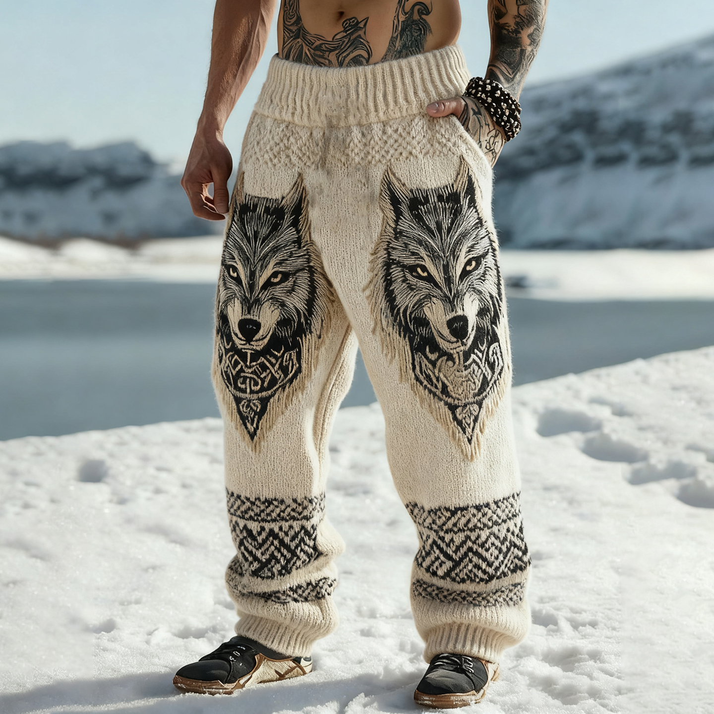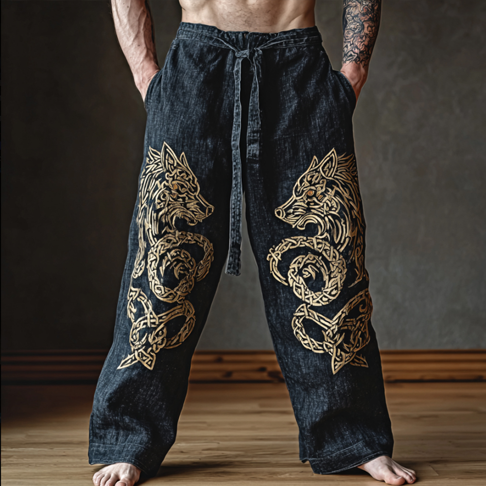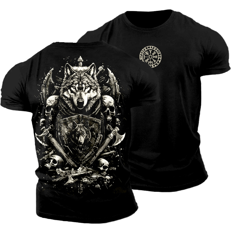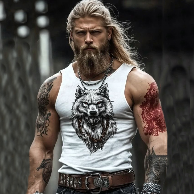 Men's Hooded Thick Sweater With Viking Style Tribal Totem And Wolf Totem Patterns