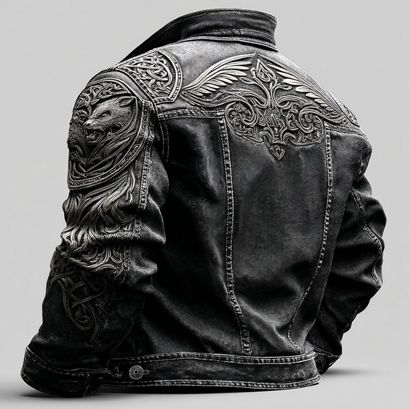 Men's Viking Celtic Knot And Wolf Pattern Flannel Comfortable Warm Hooded Jacket