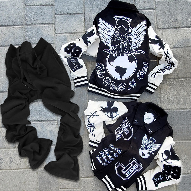 Hip Hop Street Zipper Hoodie Pants Two-Piece Set