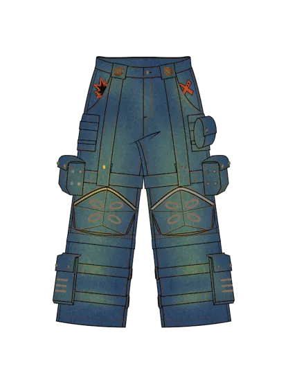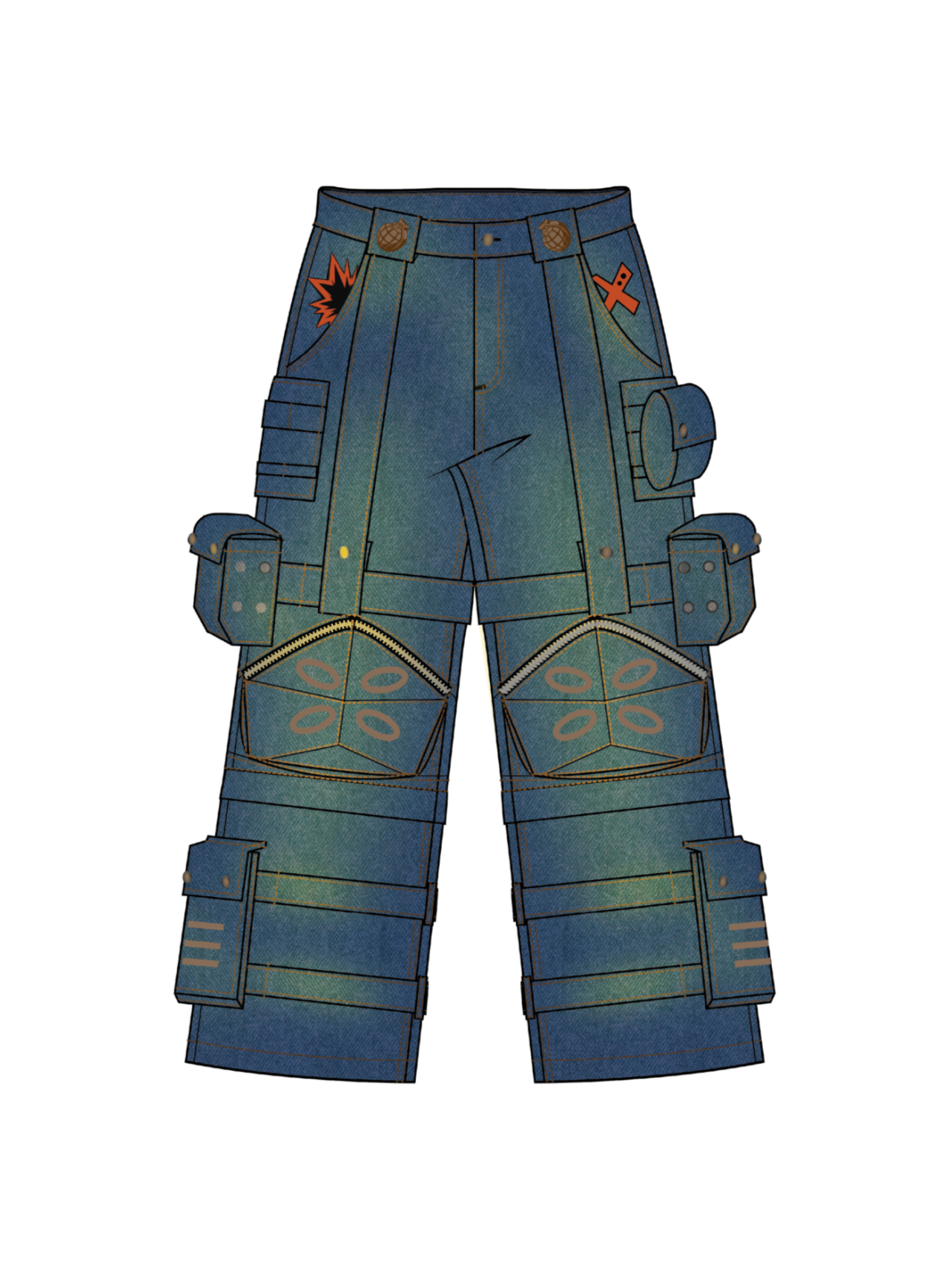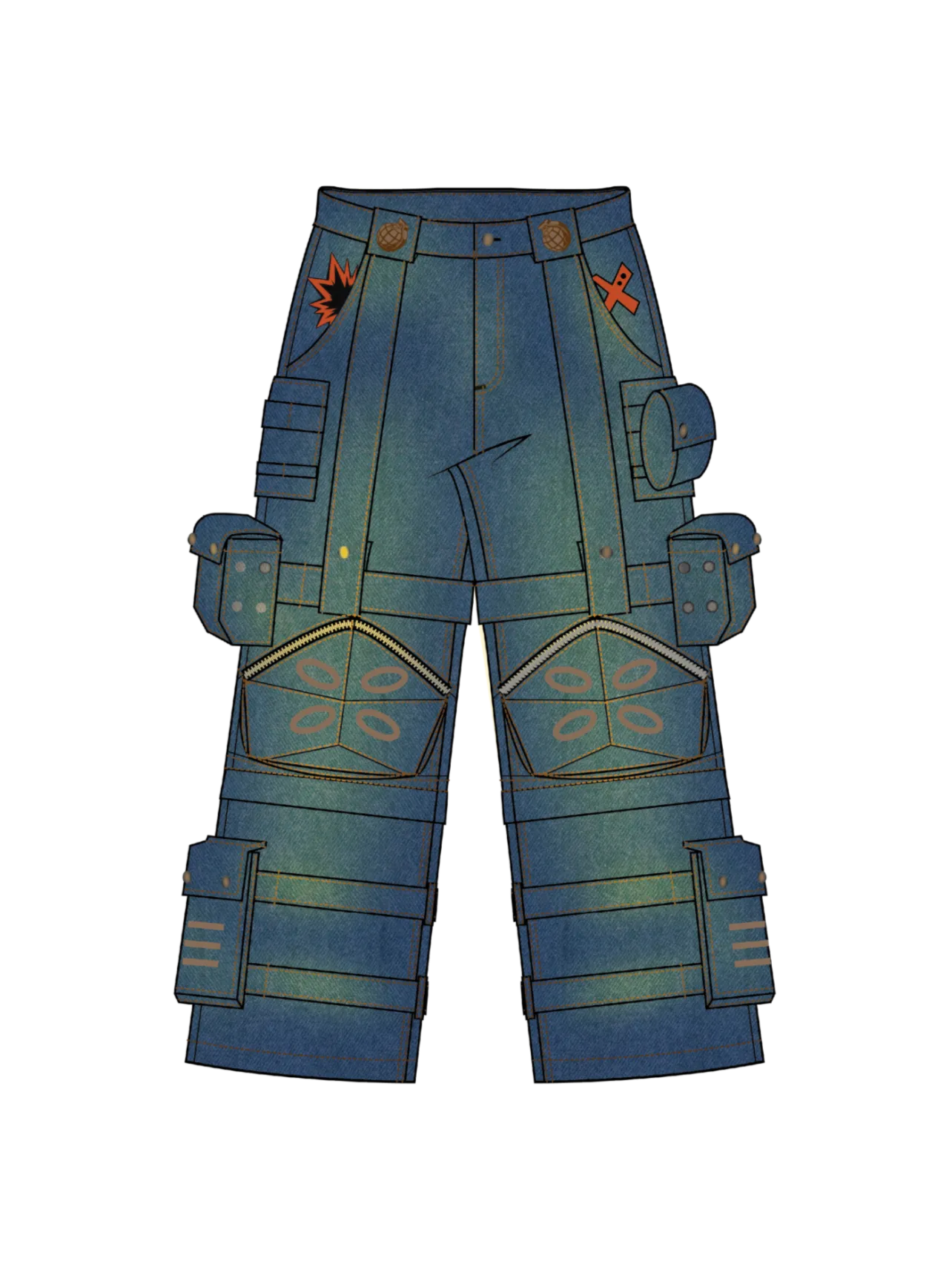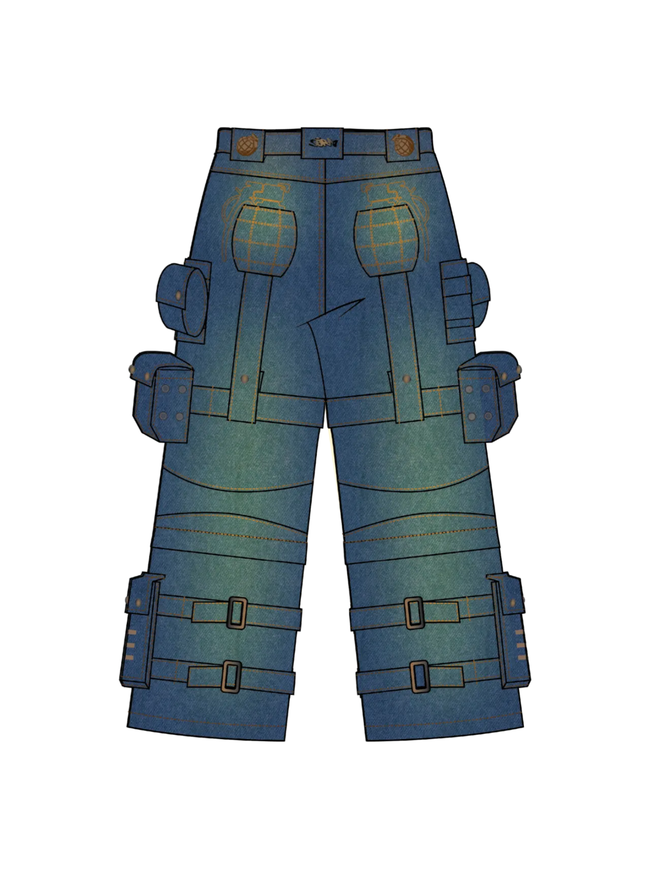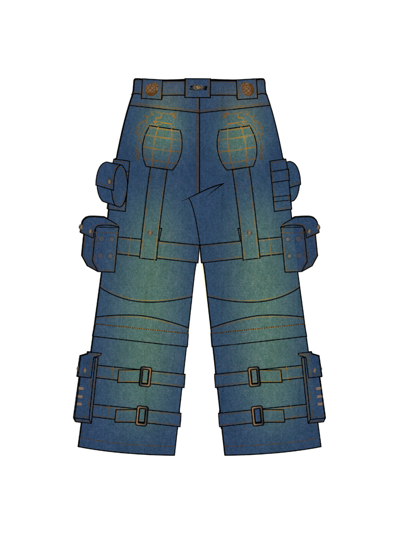These pants are made of High-Quality Heavyweight Washed Denim with many detachable pockets on each side. It's convertible into shorts by unzipping the bottom parts of the pants. Embroidery designs on the pockets on the front and back. We also added straps on the bottom of the pants so you can adjust them to give them a tighter look.