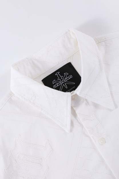LONG SLEEVE COLLARED MONOGRAM BUTTON DOWN