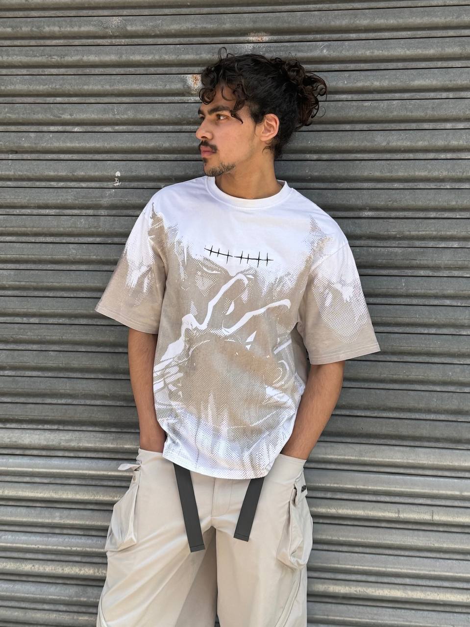 This T-shirt is made of High-Quality Soft Cotton and a UV-reactive print. As soon as you go outside under the sunlight, the print will come out. When you are indoors, the tee is almost just white with a little bit of print visible. Soft and comfortable, cool and breathable.