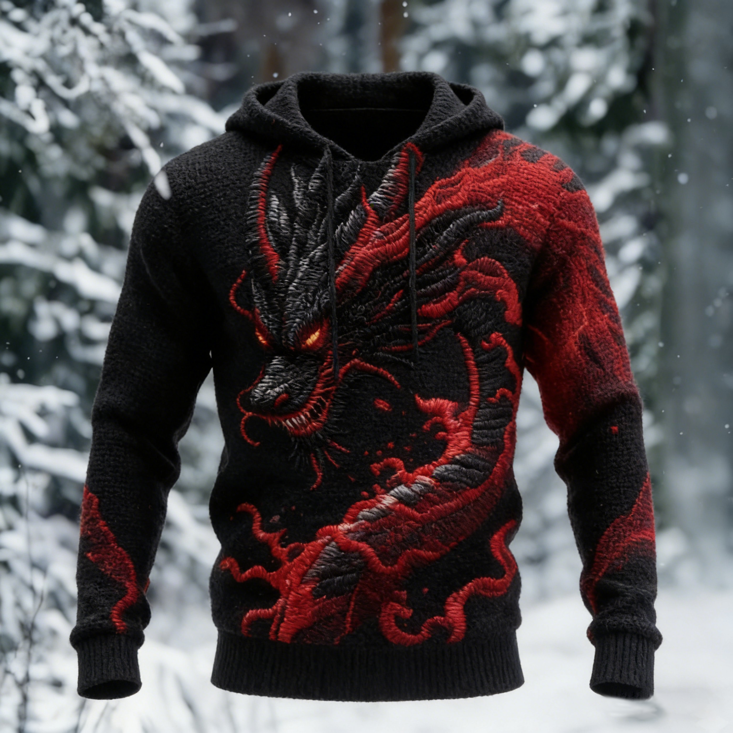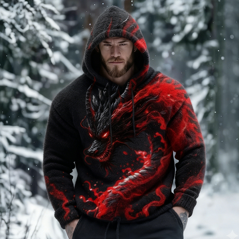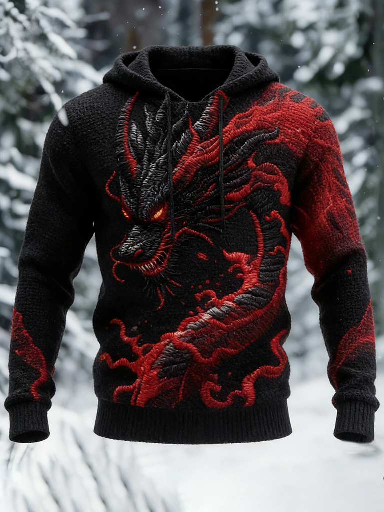 Dragon Pattern Men's Cozy Hooded Sweater