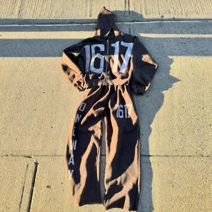Fashion casual digital print zipper sweatshirt suit