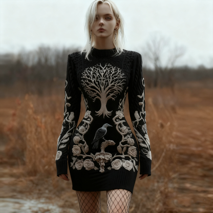 Halloween Women's Night Raven Viking Retro Knit Sweater Dress