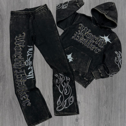 Lucky Star casual hoodie and trousers two-piece set