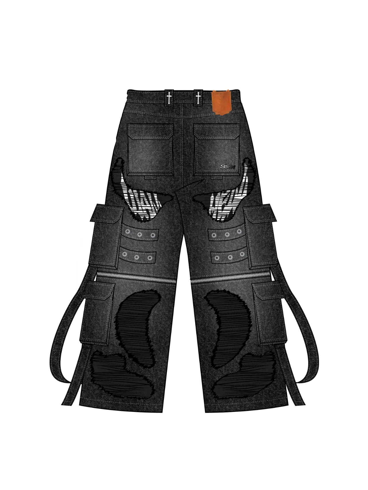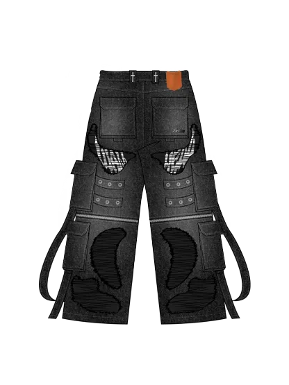 These pants are made of High-Quality Heavyweight Brushed Denim with zipper pockets on each side. Very comfortable and warm. It will keep the color bright for a long time.