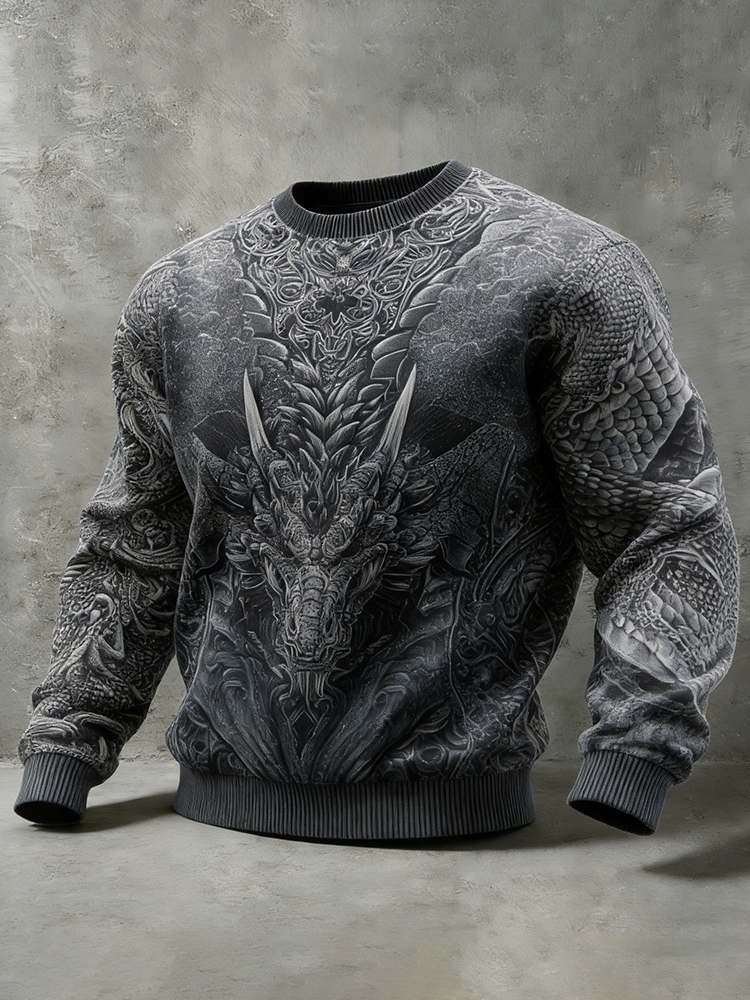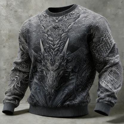 Men's Celtic Dragon Pattern Comfortable Crew Neck Sweatshirt