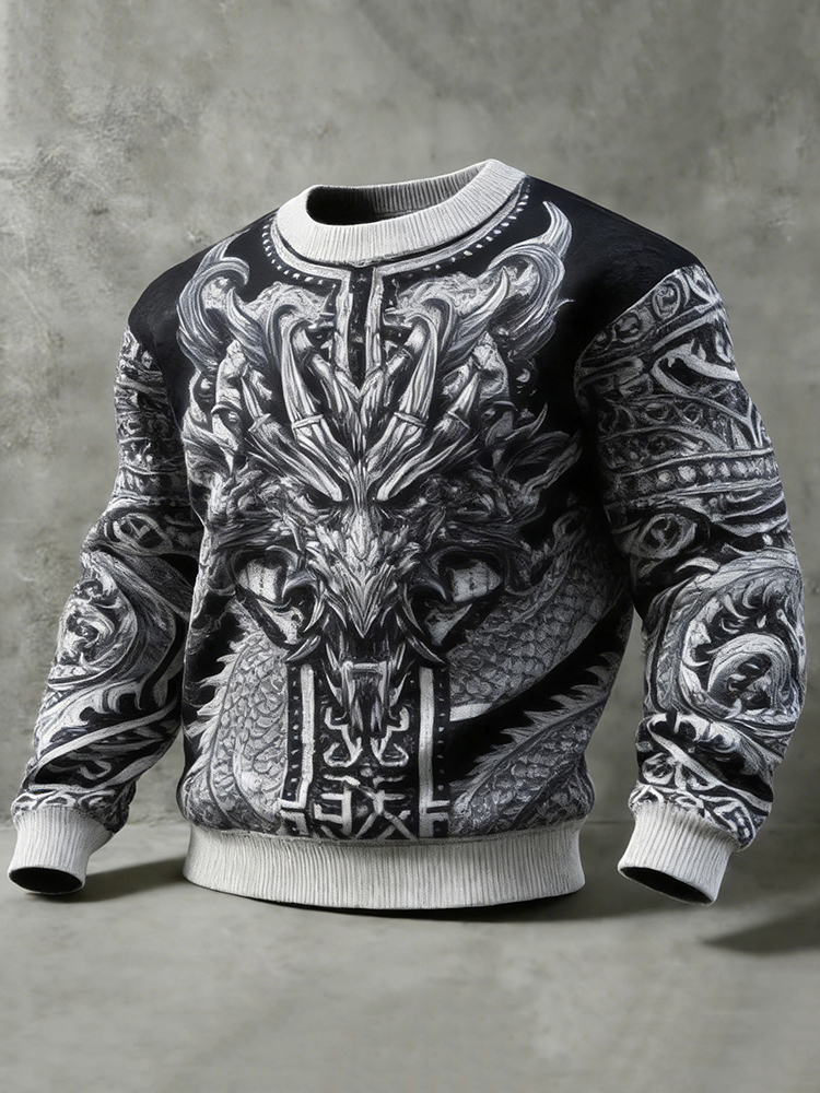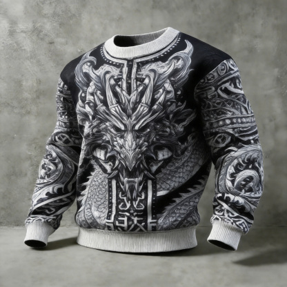 Men's Celtic Dragon Pattern Comfortable Crew Neck Sweatshirt