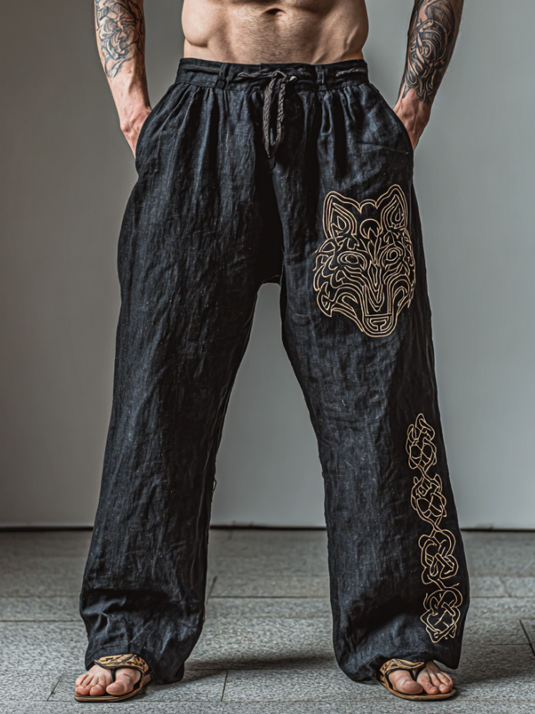 Men's Nordic Mythology Wolf Totem Embroidery Casual Pants