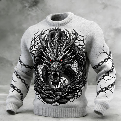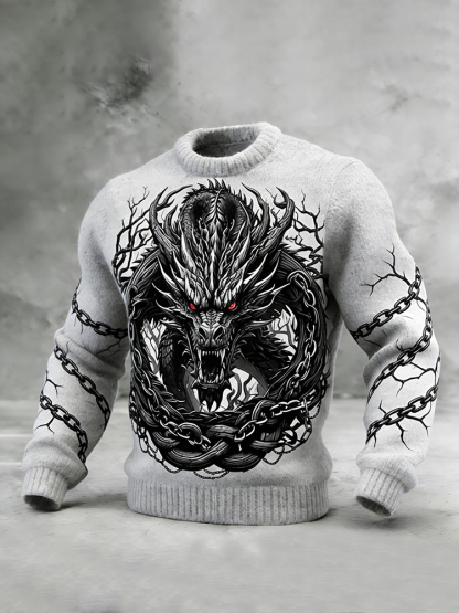 Men's Retro Mythical Dragon Art Graphic Pattern Knit Sweater