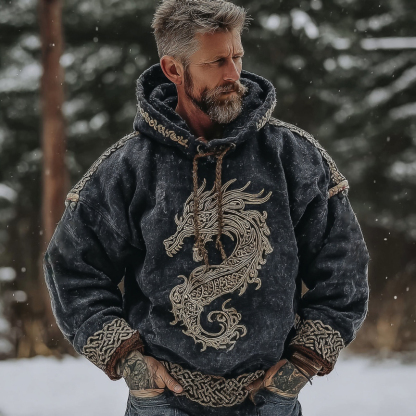 Men's Retro Viking Viking Tribal Dragon Celtic Knot Art Print Casual Hoodie