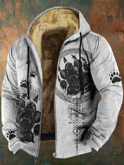 Men's Retro Viking Wolf Claw Print Casual Zip Up Jacket