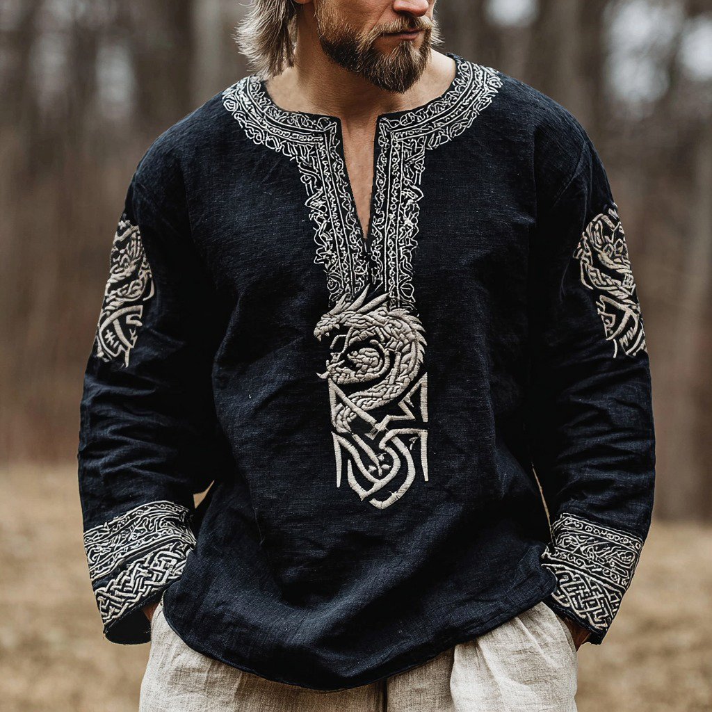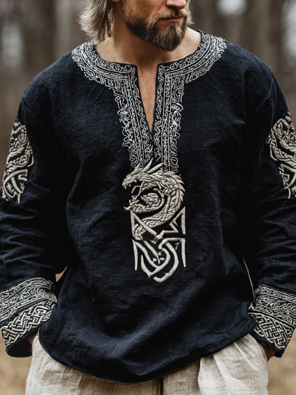 Men's Vegvisir Dragon Celtic Knot Graphics V-neck Shirt