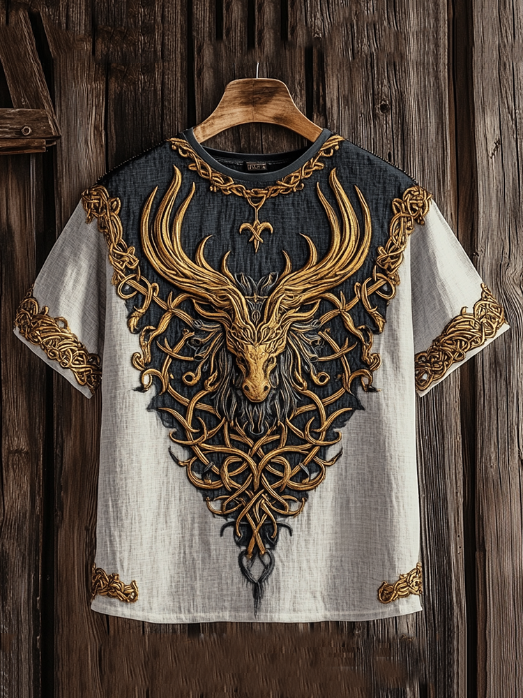 Men's Viking Celtic Dragon Art Cozy Linen T-shirt