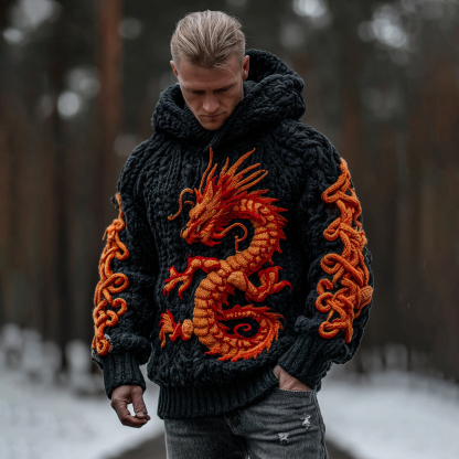 Men's Viking Celtic Dragon Art Thick Knit Hoodie