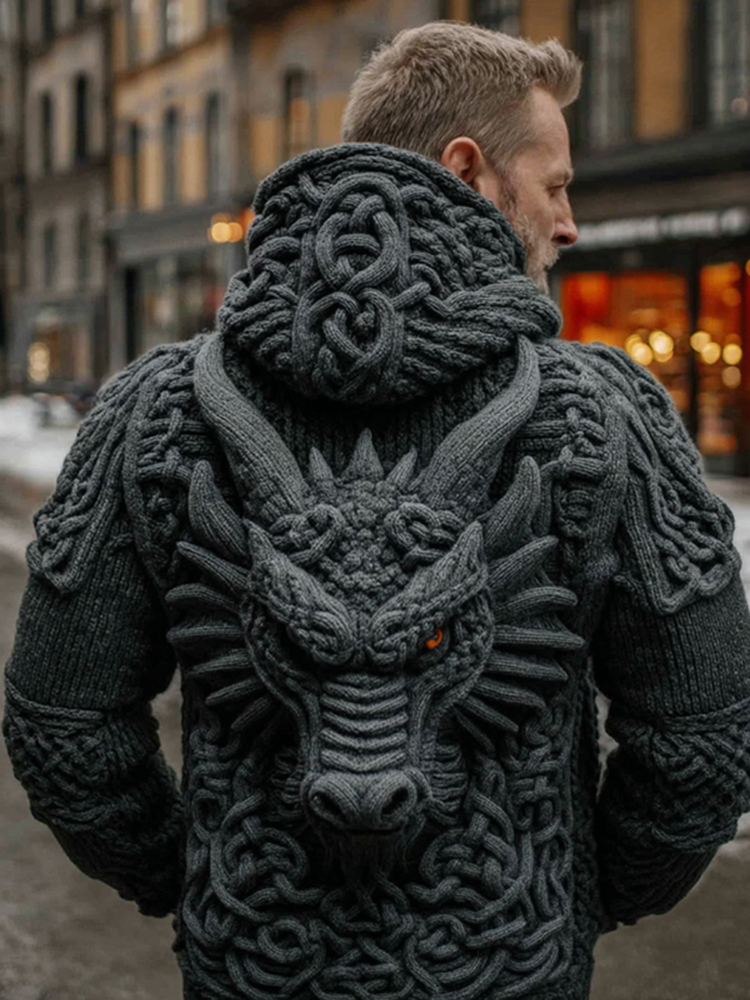 Men's Viking Celtic Dragon Cozy Casual Hooded Sweater