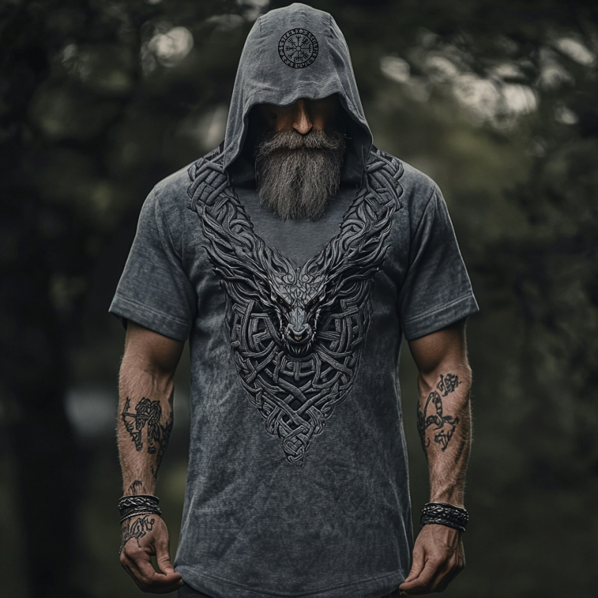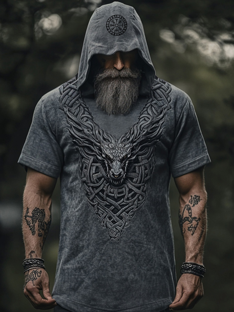 Men's Viking Dragon Celtic Hooded Linen Shirt
