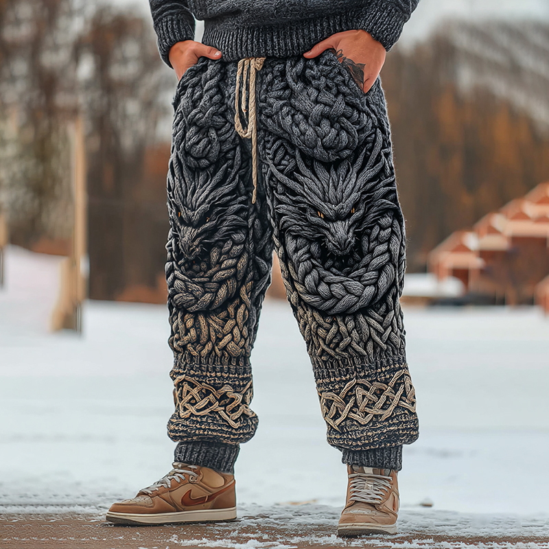 Men's Viking Dragon Celtic Knot Art Wide Leg Warm Knit Pants