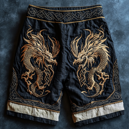 Men's Viking Dragon Celtic Knot Linen Art Shorts