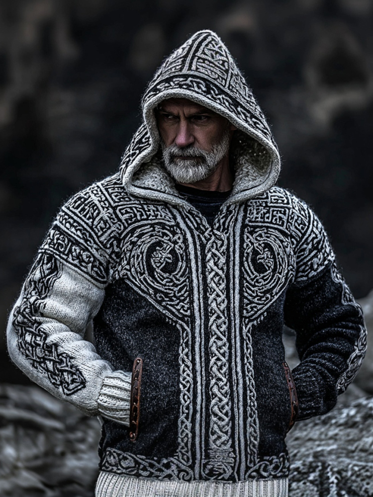 Men's Viking Dragon Totem Celtic Knot Knit Hoodie