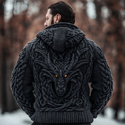 Men's Viking Inspired Celtic Dragon Cozy Sweater Cardigan