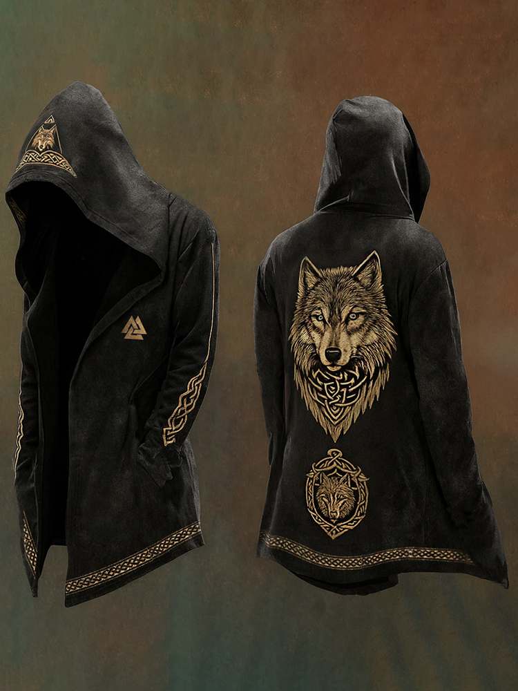 Men's Viking Nordic Wolf Design Streetwear Hooded Jacket