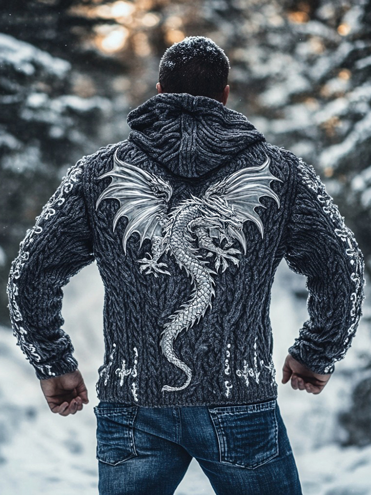 Mens Viking Silver Dragon Thick Hooded Sweater