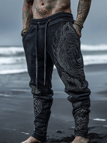 Men's Viking Wolf Celtic Embroidered Vintage Comfy Pants