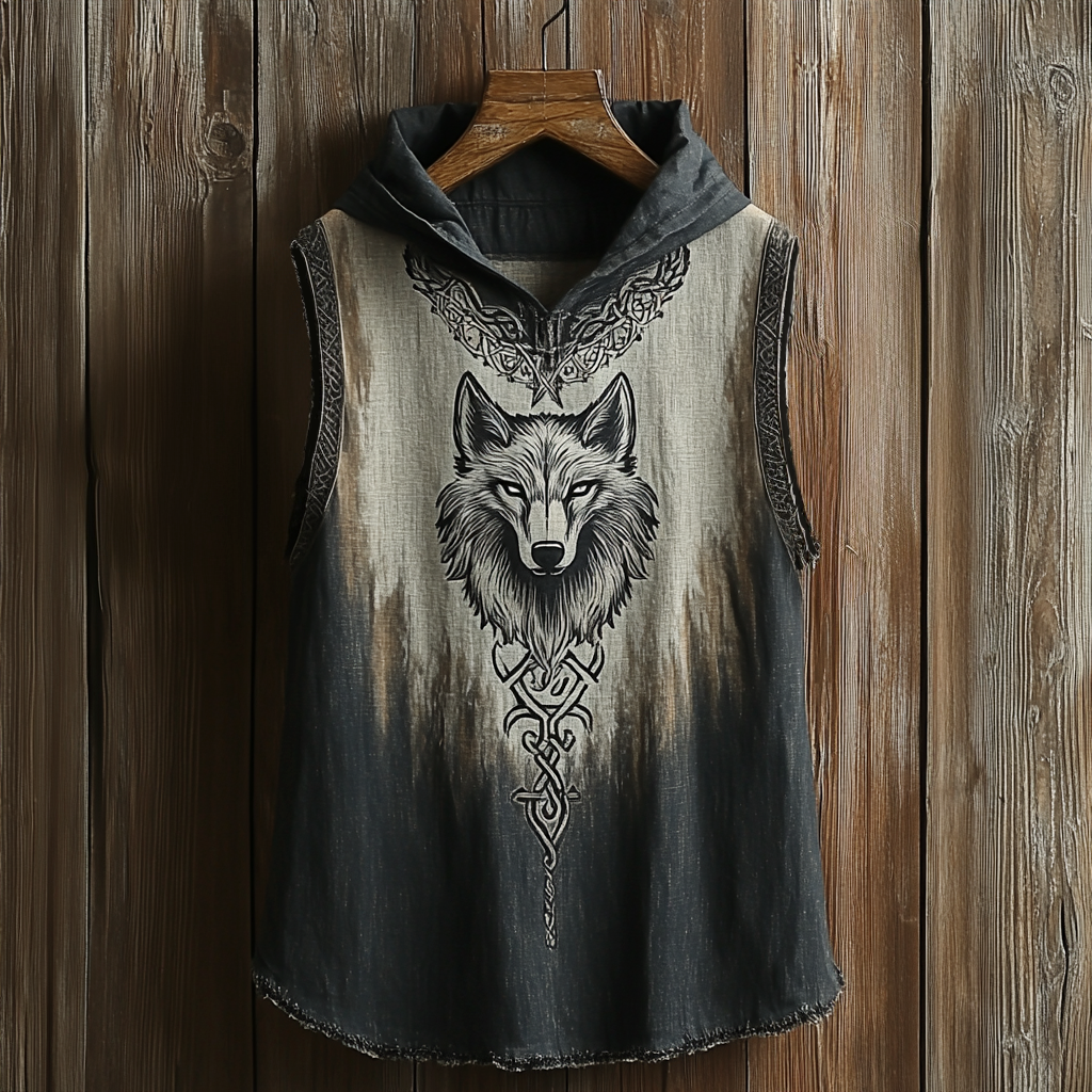Men's Viking Wolf Head Celtic Mythology Hooded Tank Top