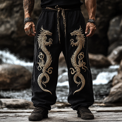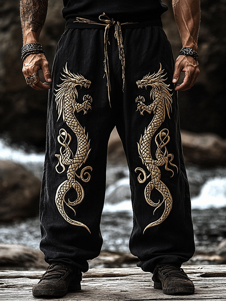 Men's Vintage Viking Dragon Art Linen Pants