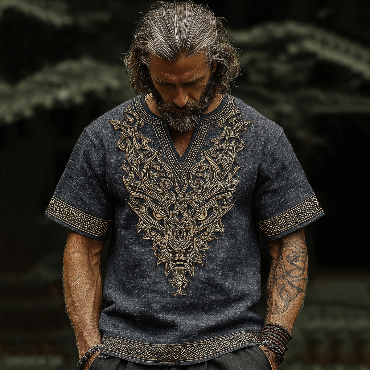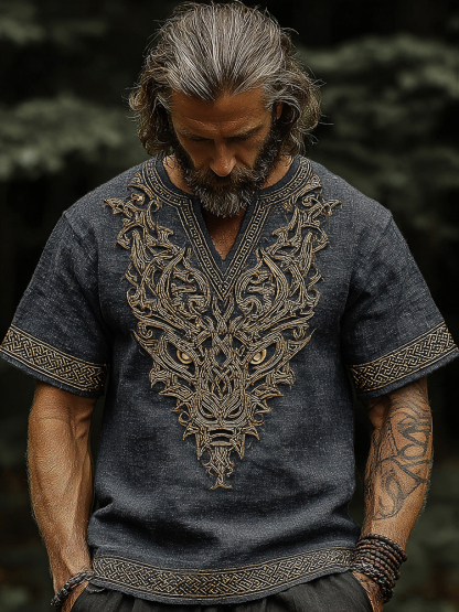 Men's Vintage Viking Dragon Celtic Art Linen Shirt