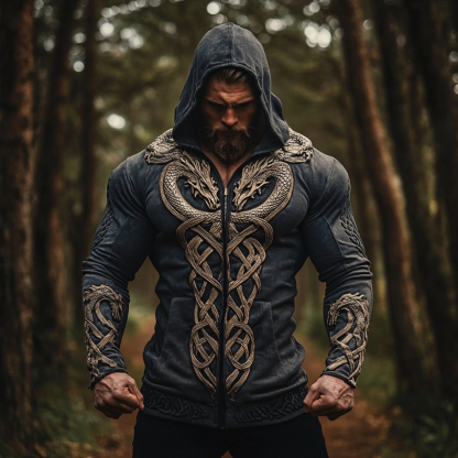Men's Vintage Viking Dragon Celtic Knot Art Cotton Blend Zipper Hoodie