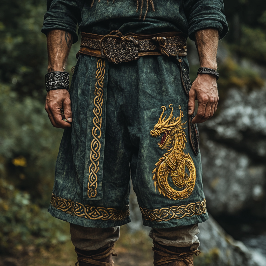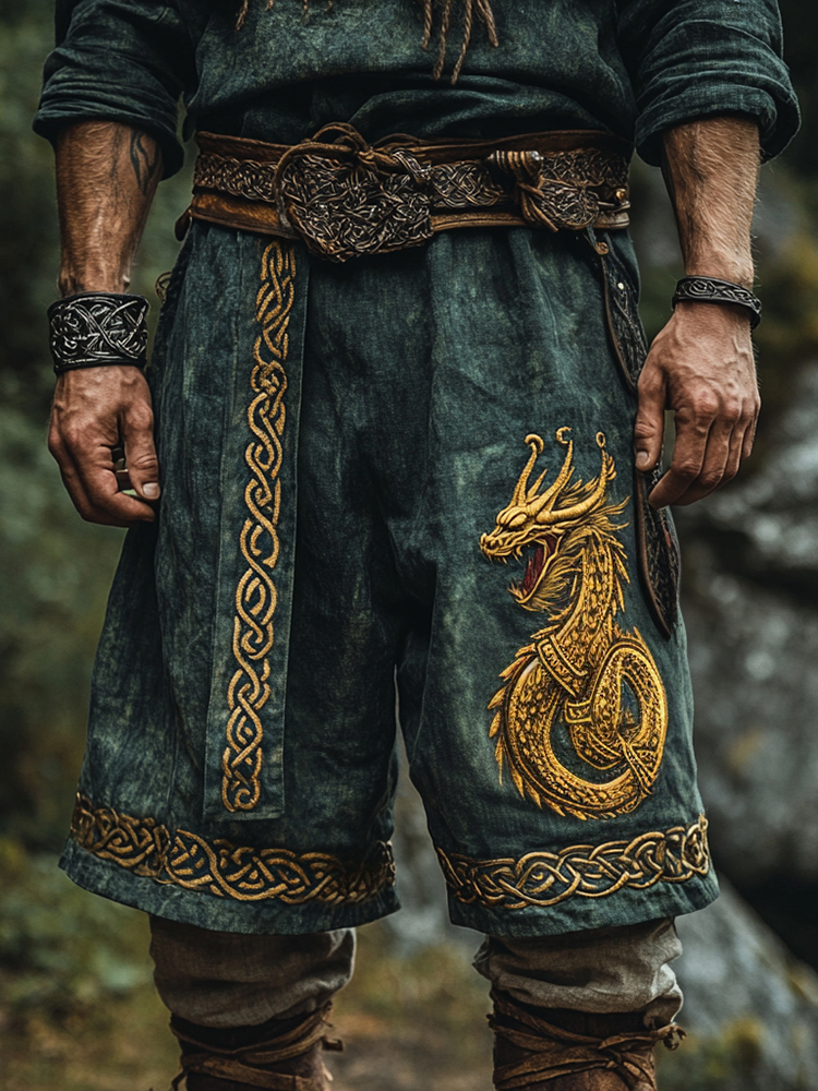 Men's Vintage Viking Golden Dragon With Celtic Knot Art Casual Linen Shorts