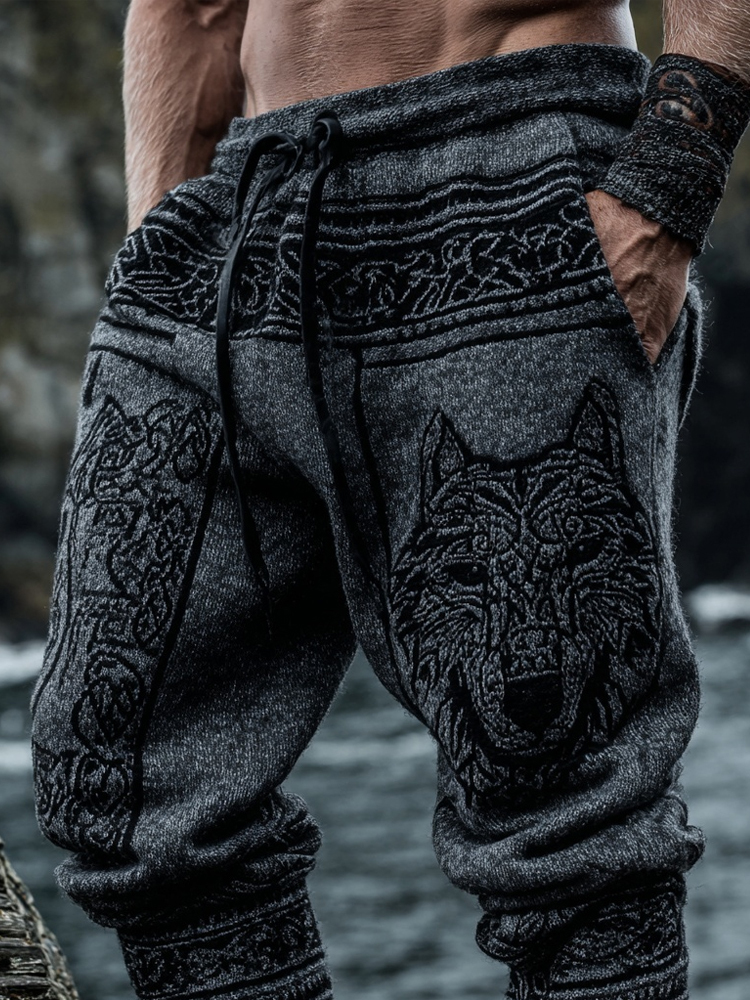 Men's Vintage Viking Inspired Celtic Wolf Cozy Knit Pants