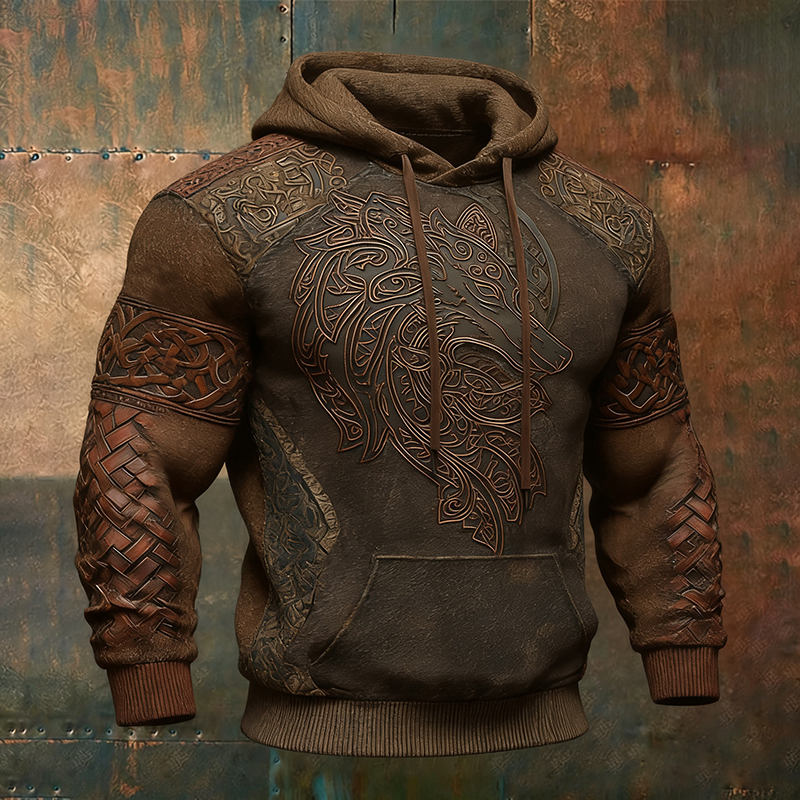 Men's Vintage Viking Wolf Celtic Patchwork Casual Hoodie