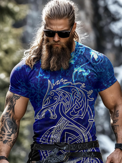 Men's Vintage Viking Wolf Rune Print T-shirt