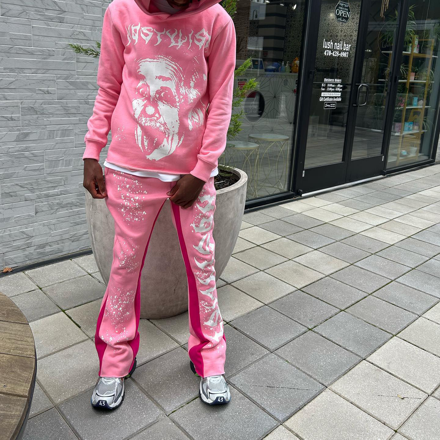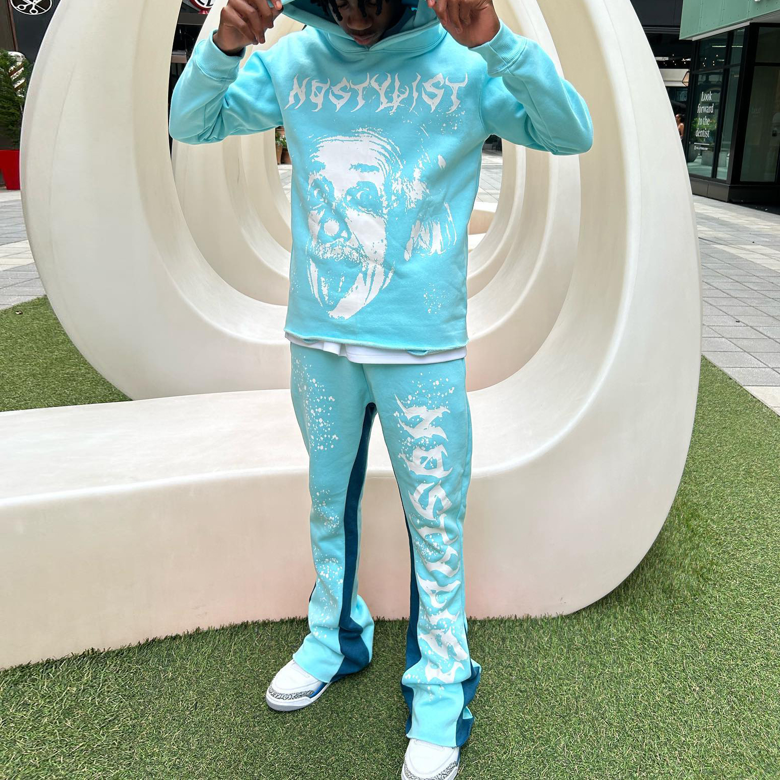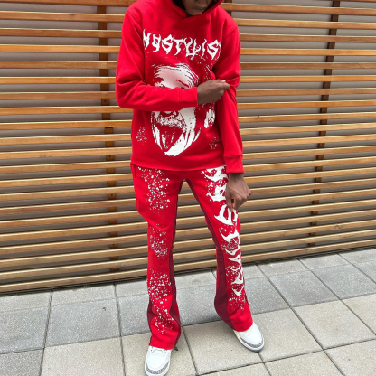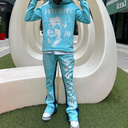 Personalized street style casual hoodie with contrasting color sweatpants set