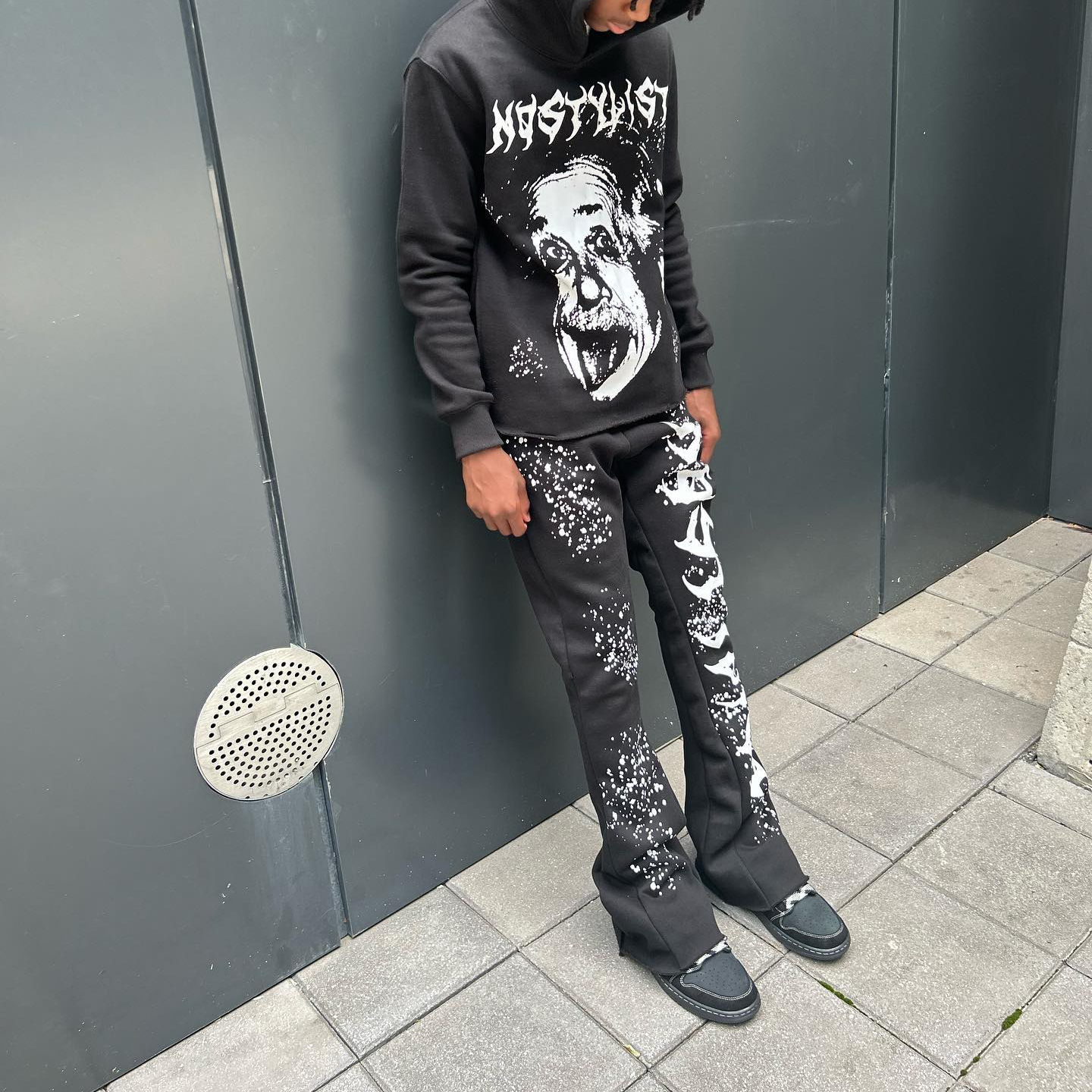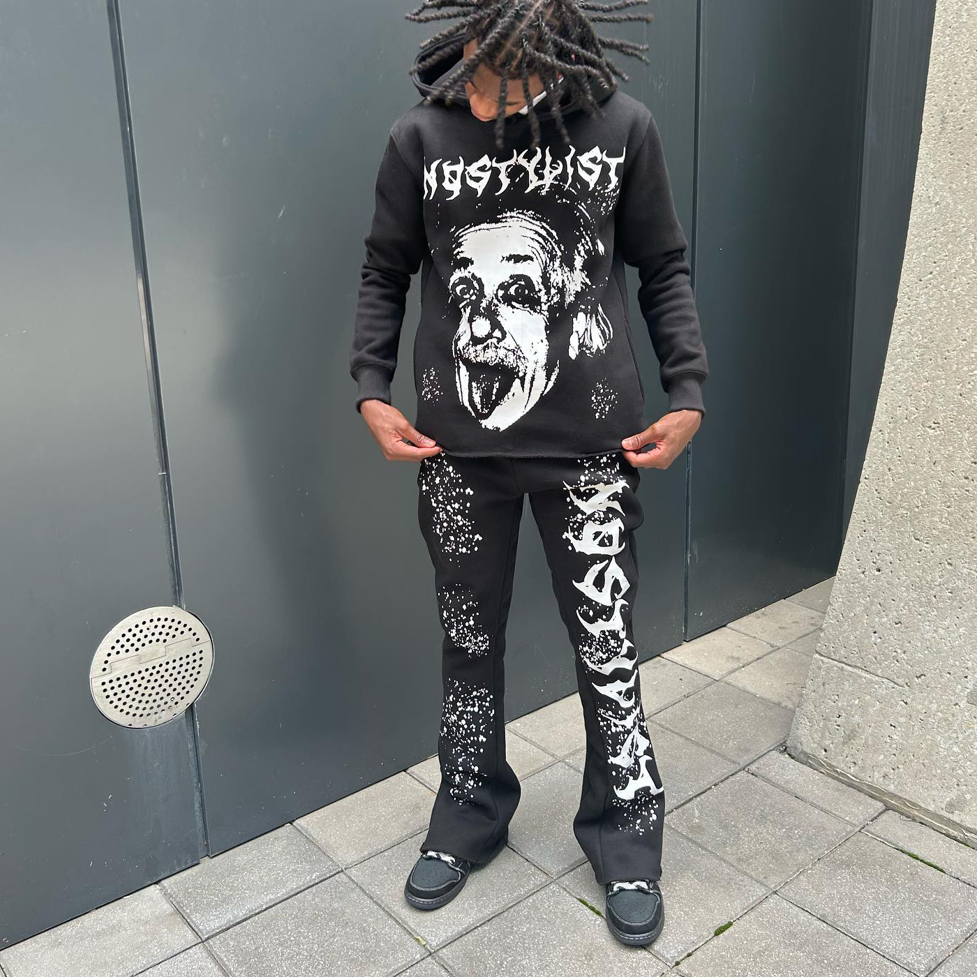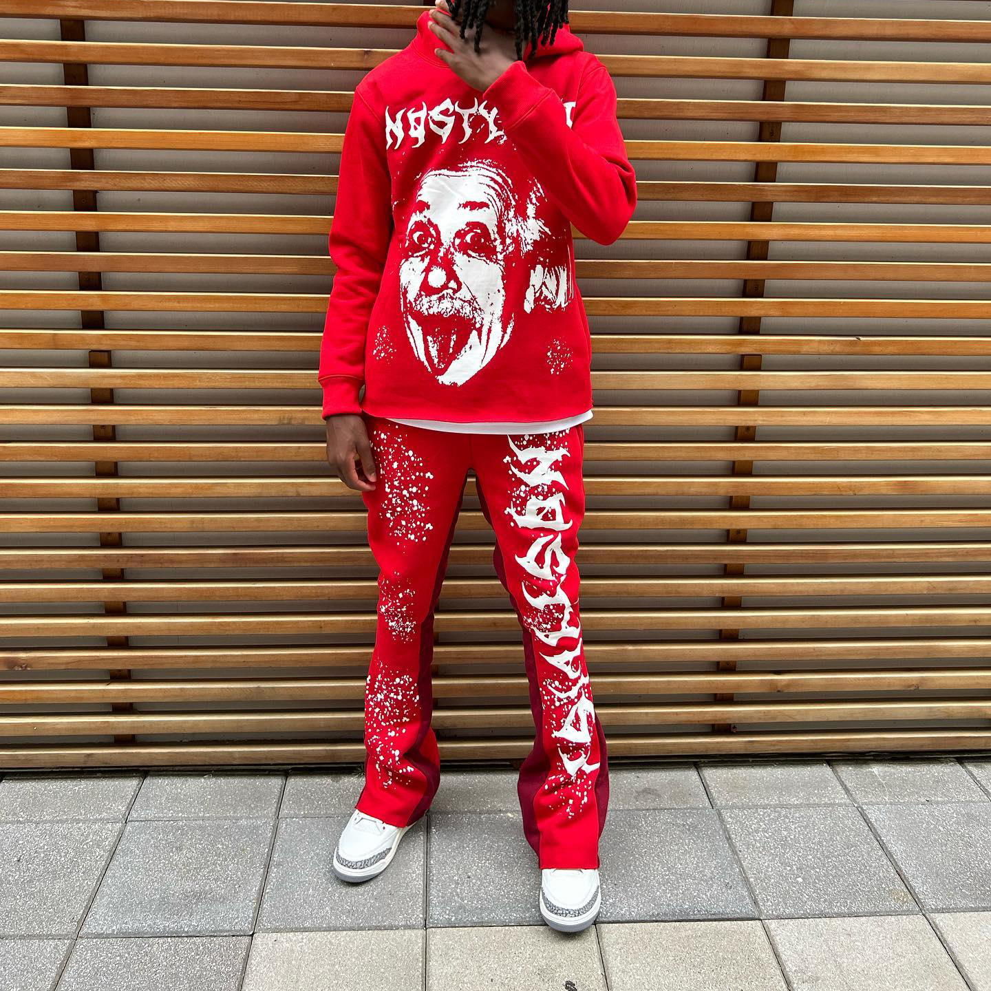 Personalized street style casual hoodie with contrasting color sweatpants set