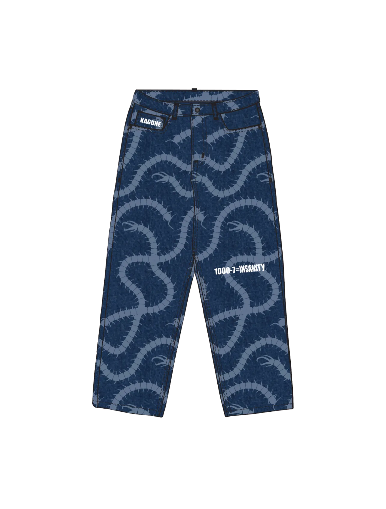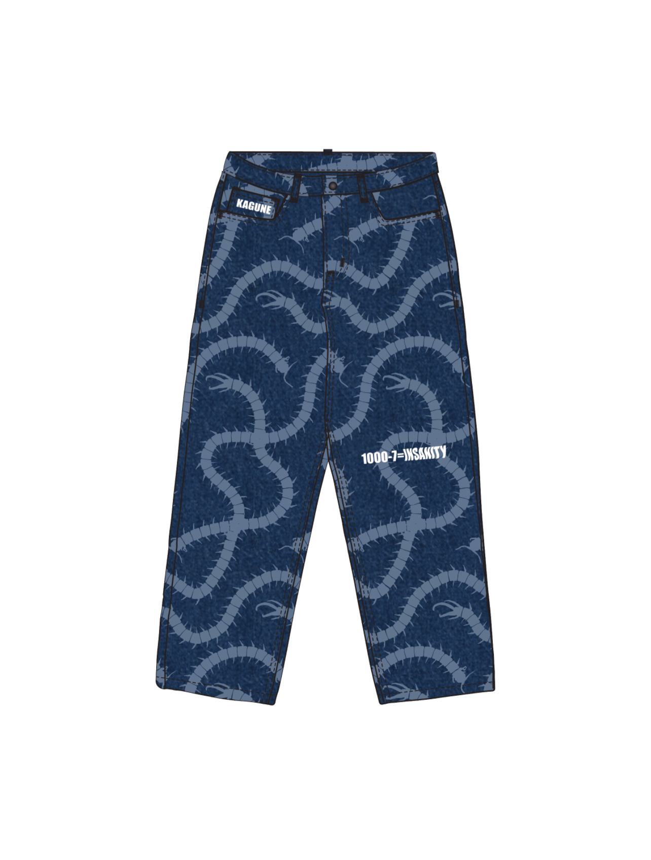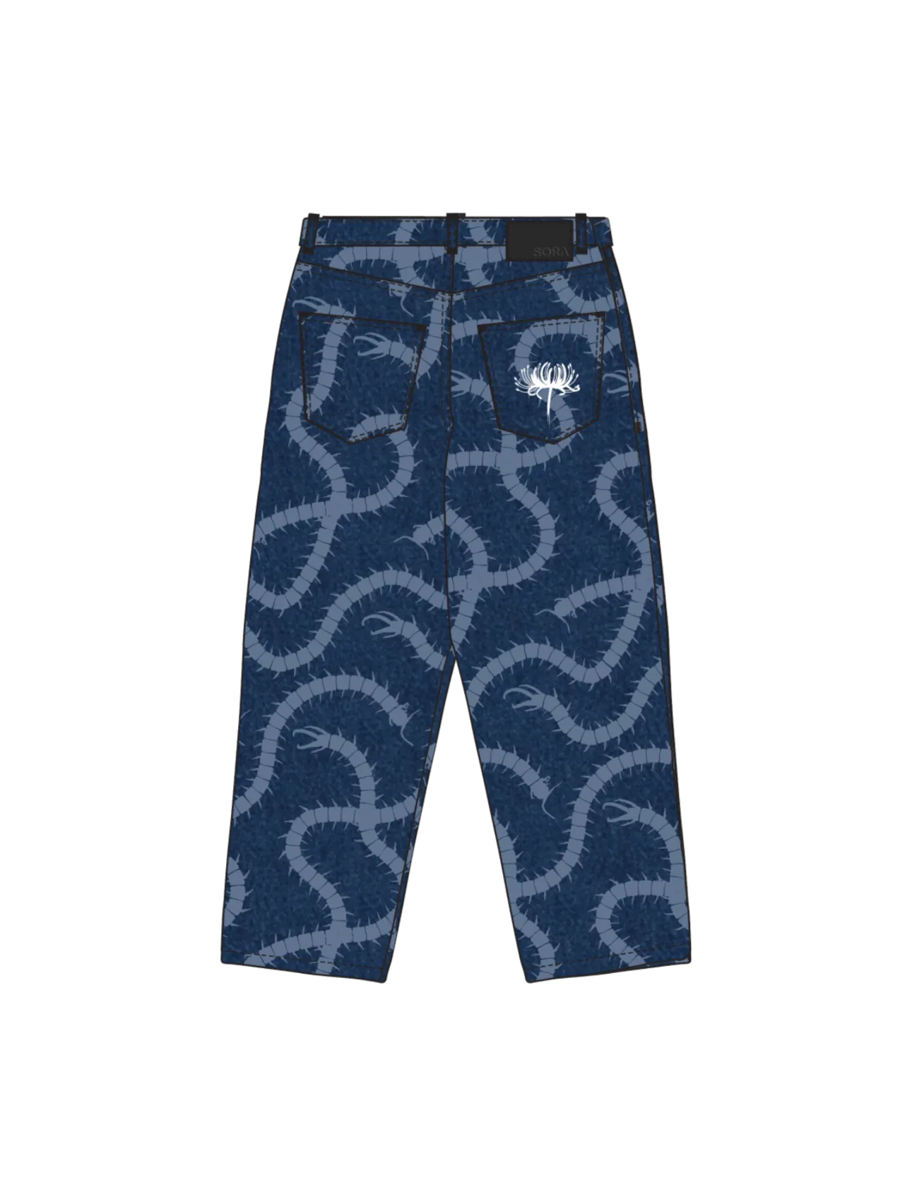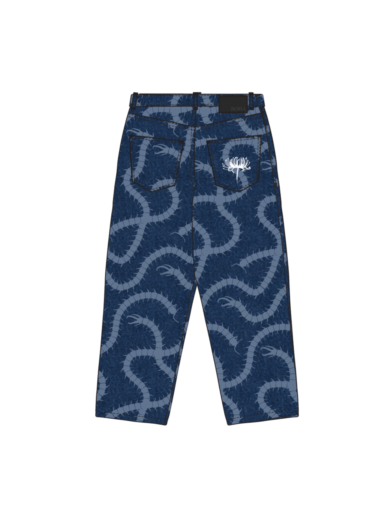 These pants are made of High-Quality Heavyweight Brushed Denim with laser-printed and embroidery designs on the front and back. Very comfortable and warm. It will keep the color bright for a long time.