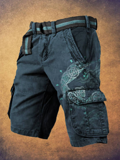 Ragnarök's Moon Wolf Print Men's Cargo Shorts