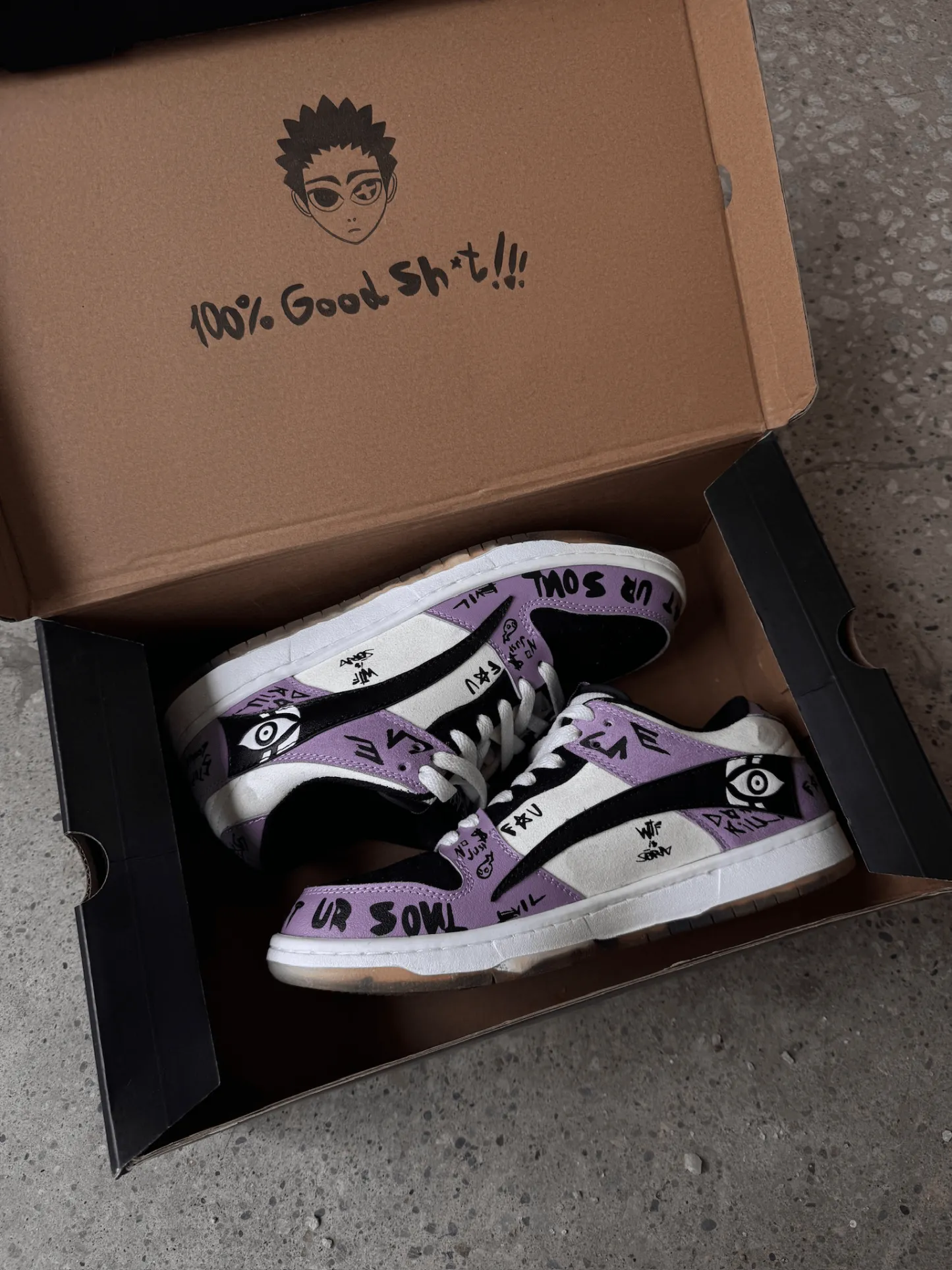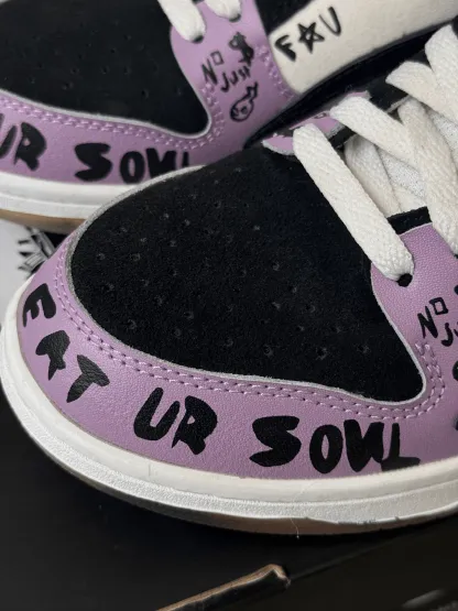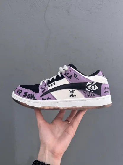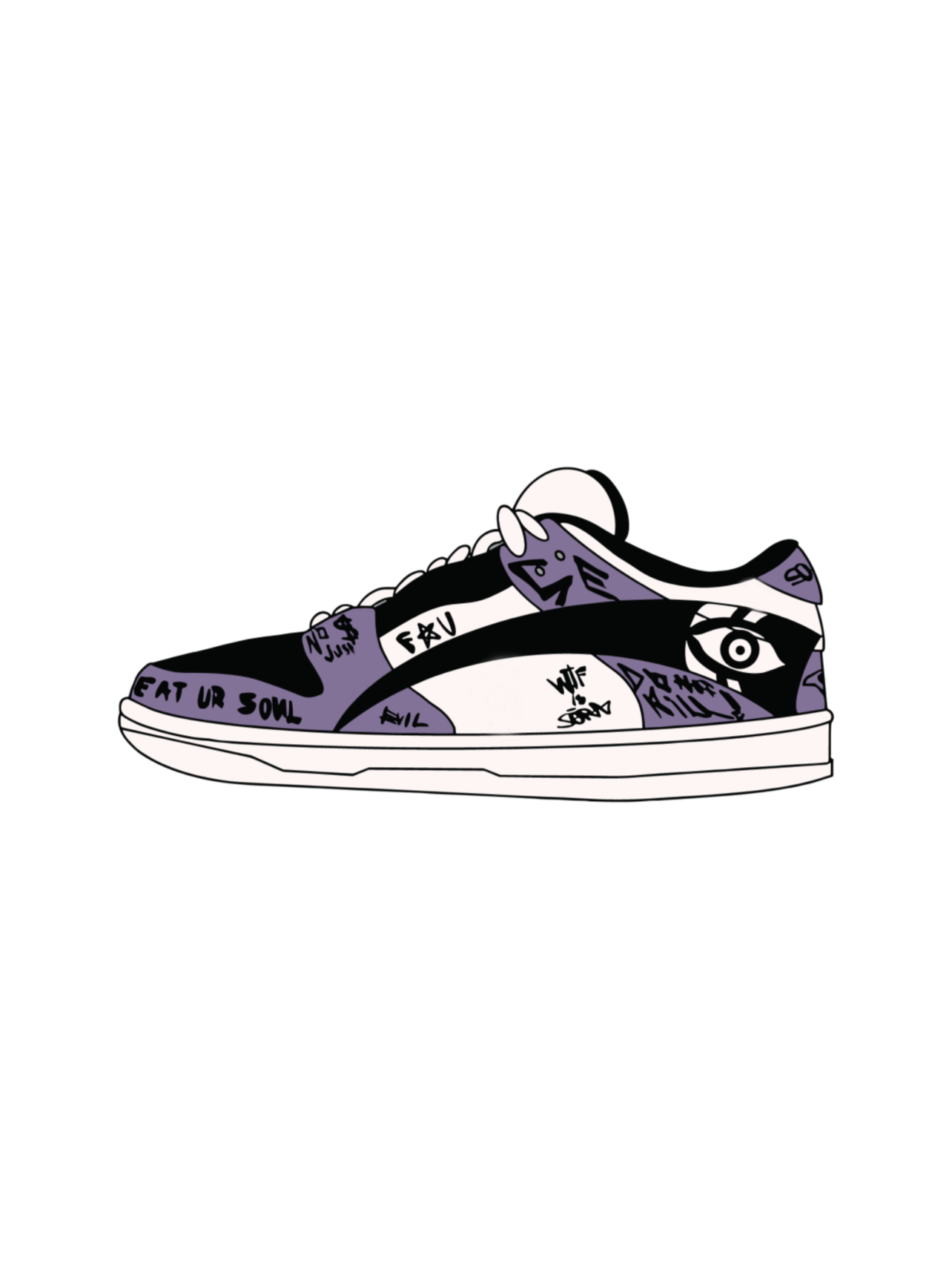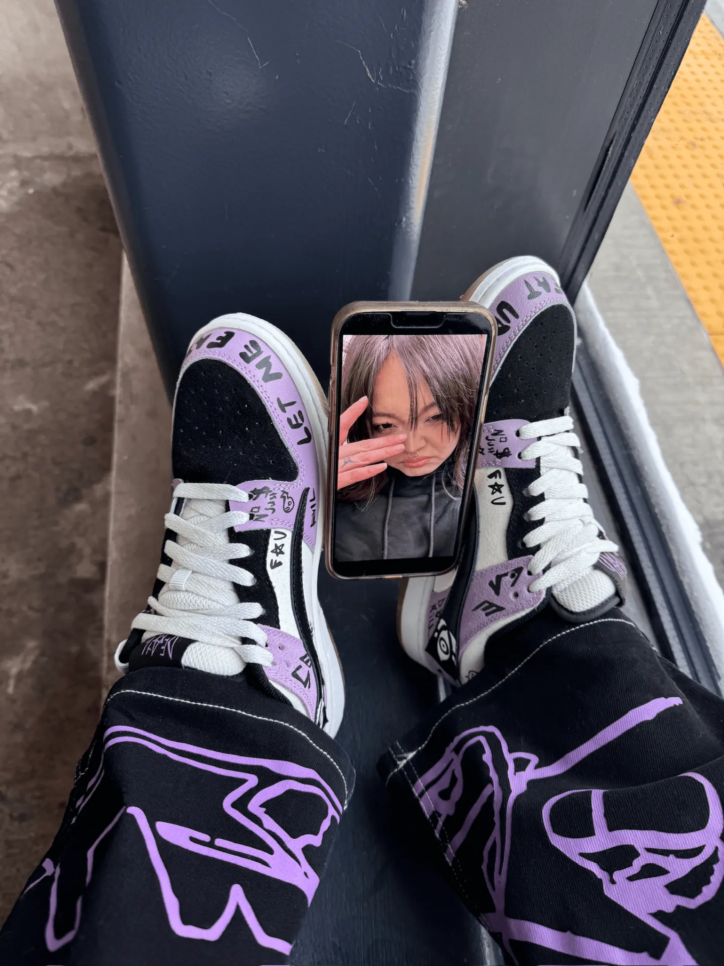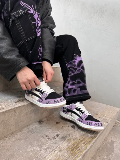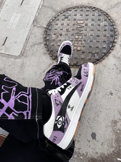 These sneakers are made of real leather and suede with stitched-up, printed and embroidery designs on the front, back, and sides. Comfortable and durable to skate.