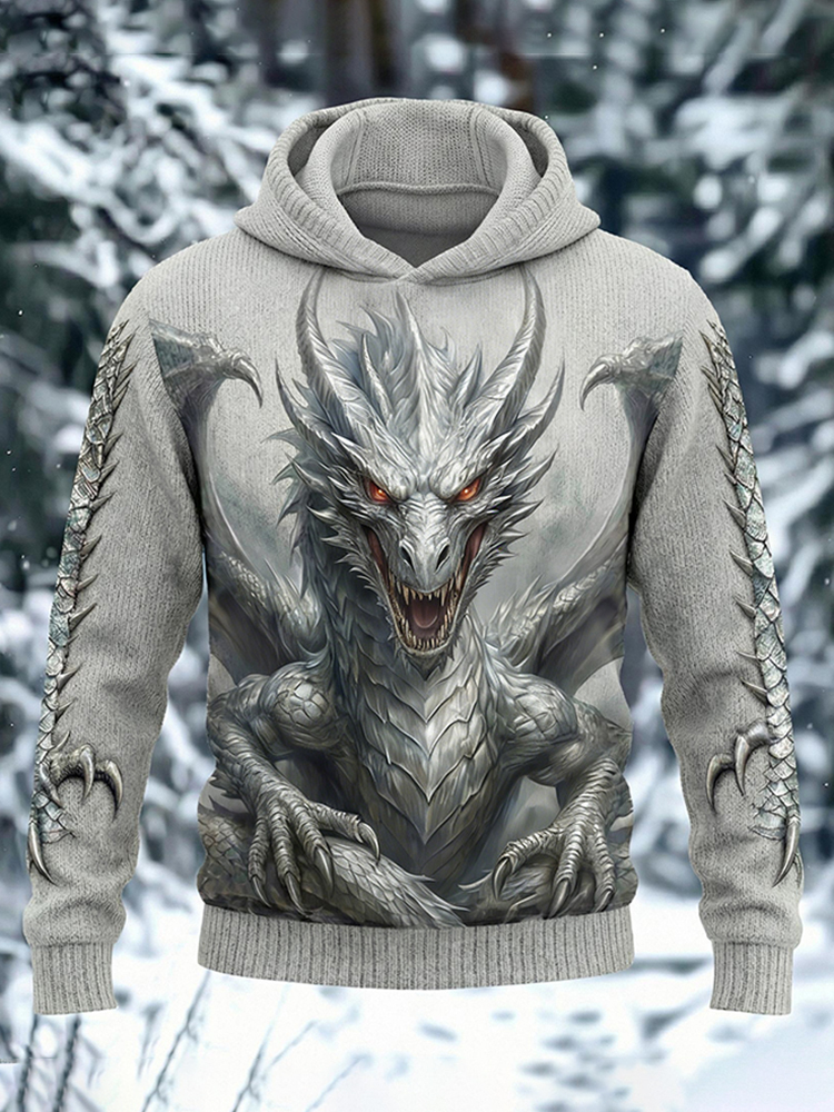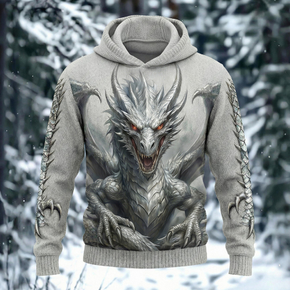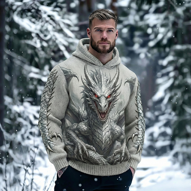 Silver Dragon Pattern Men's Cozy Hooded Sweater