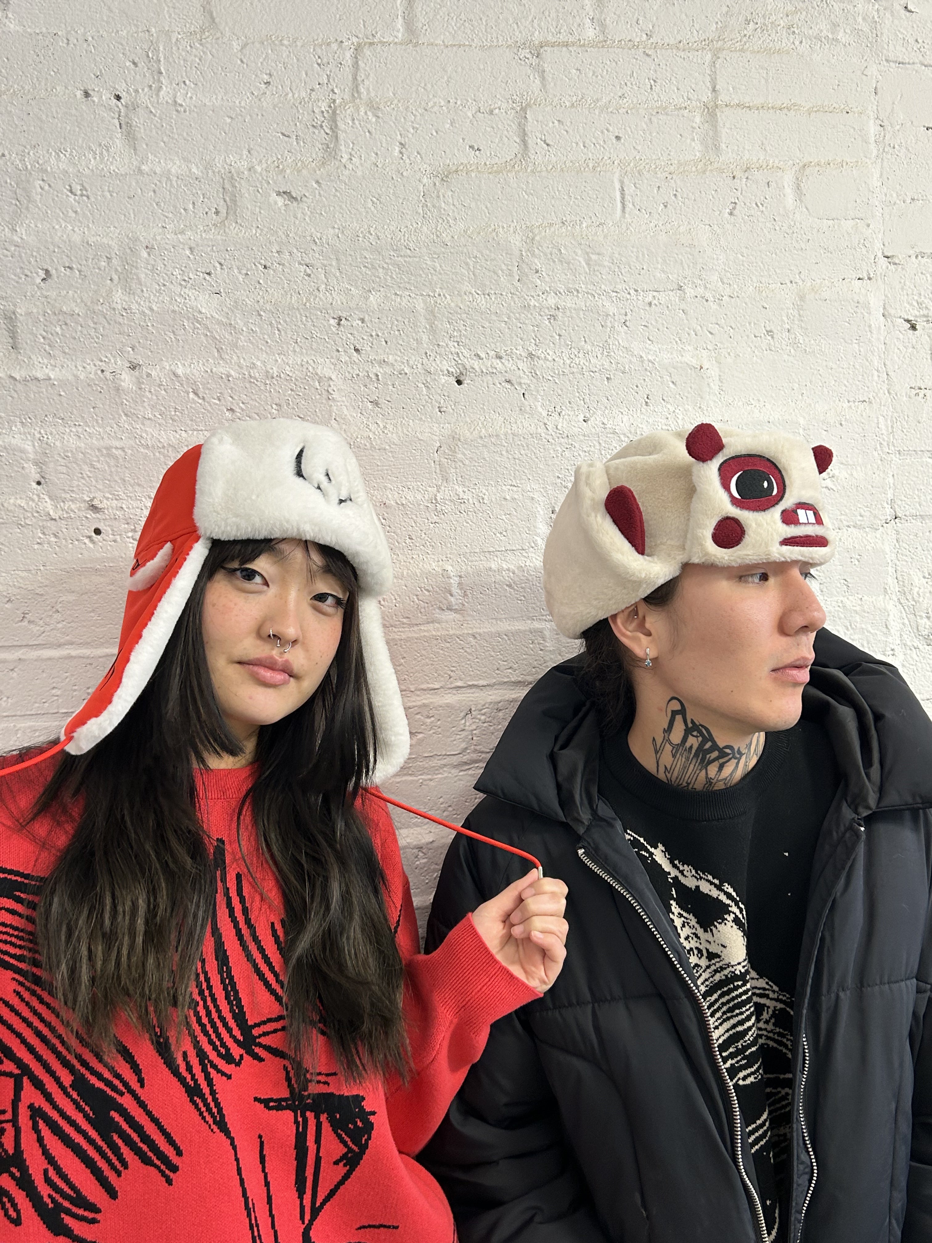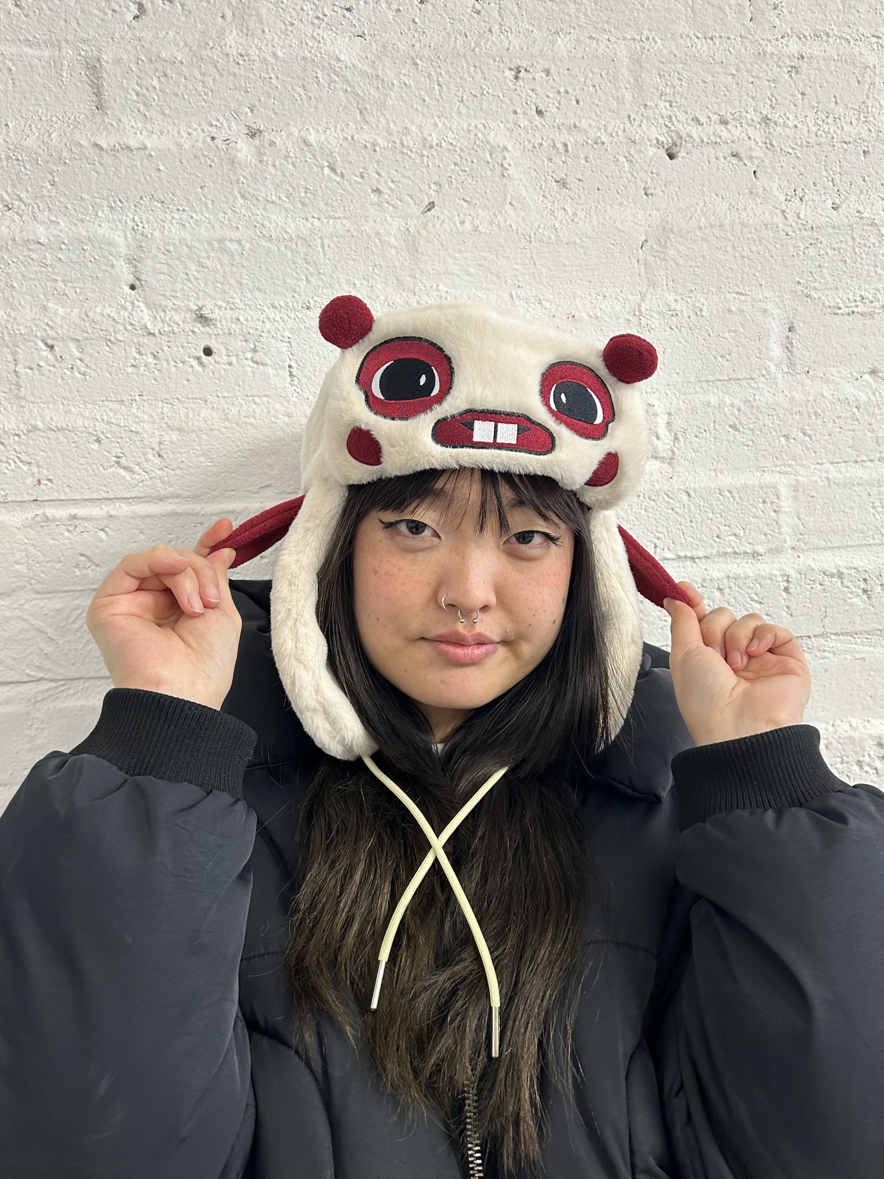 The warm winter Ushanka hat is made in cotton twill with a sweatband in cotton fabric. Embroidery design on the front.